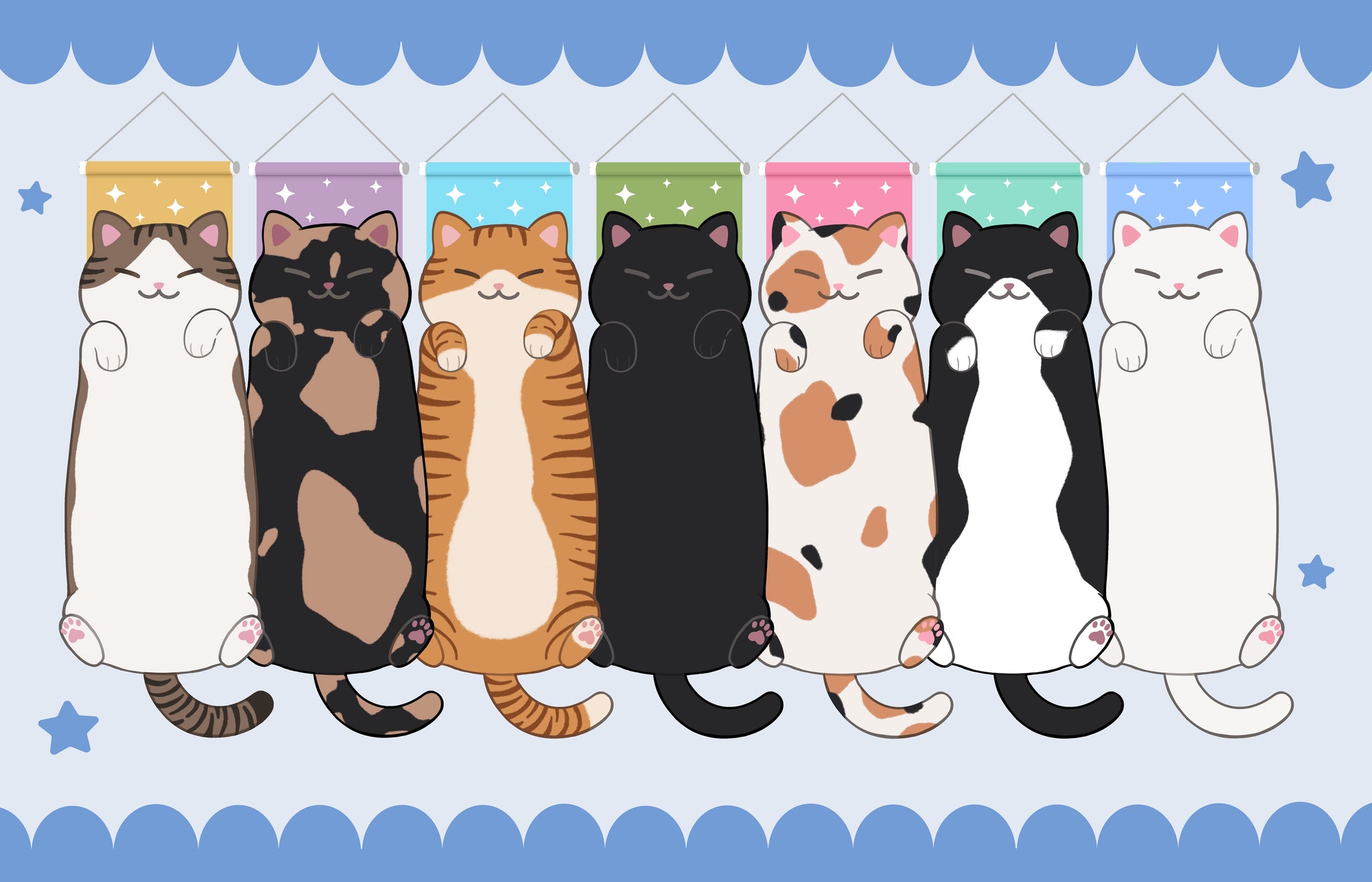 Cat Pin Banners! Featuring seven different fur variations, these cat shaped banners are 'purr-fect' to display enamel pins, or just add a touch of fun to a wall.